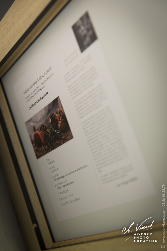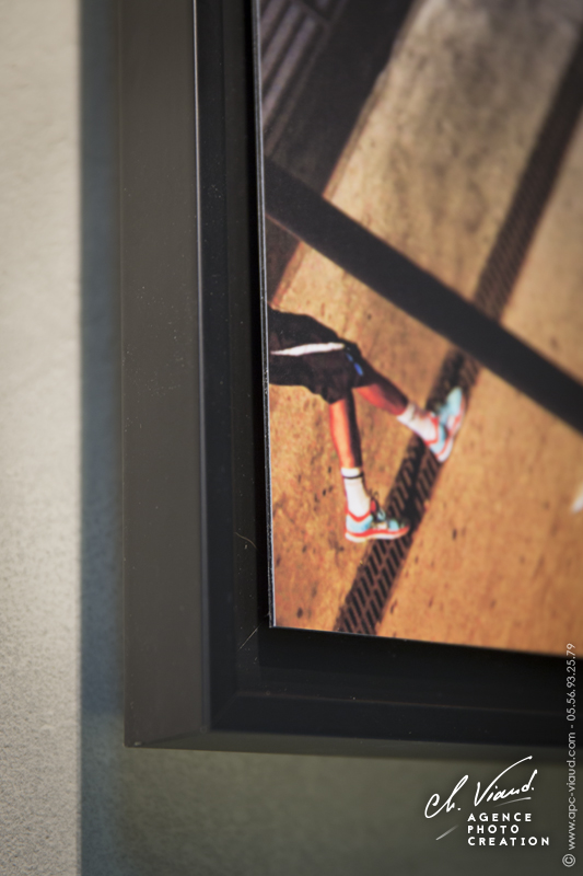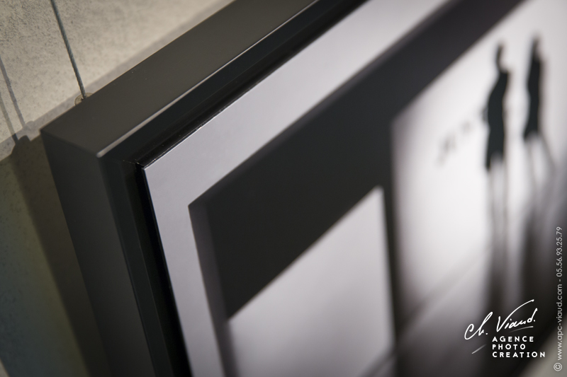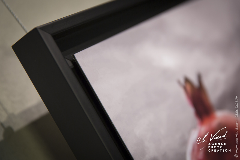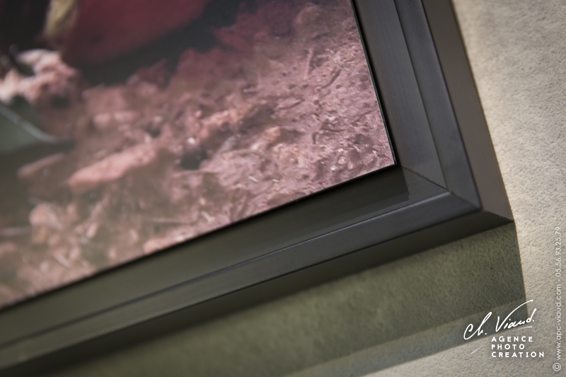 Pour une mise en valeur maximale, il nous a demandé un collage sur support alu-dibond 2mm avec un encadrement en caisse américaine réhaussée noire.