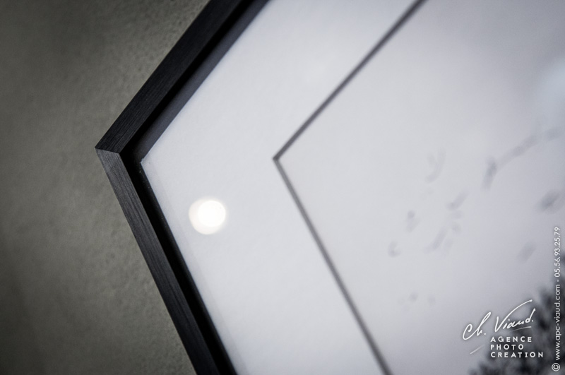 Vous trouvez le noir austère ? N'hésitez pas à le marier avec un cadre en chêne, il apportera une note chaleureuse et douce à l'ensemble. Un passe-partout noir ou blanc changera l’aspect de votre oeuvre, la mettra en valeur tout la faisant respirer.