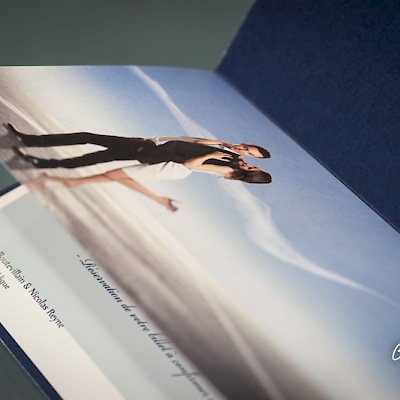 Vous avez envie d'une création de faire-part ou d'une carte de remerciement qui vous ressemble ? Que ce soit à partir d'illustrations personnelles ou à créer pour vous, à partir de vos photos que nous optimiserons ou suite à une séance photo studio que nous aurons eu le plaisir de partager, nous écouterons toutes vos envies pour créer et imprimer sur-mesure le faire-part qui vous ressemblera. En petite ou grande quantité, en grand ou en petit, en carré ou rectangulaire, juste en recto/verso ou en plusieurs volets, avec pelliculage ou vernis sélectif..., toutes les solutions sont envisageables pour l'impression de vos faire-parts... et s'adapterons à vos envies...