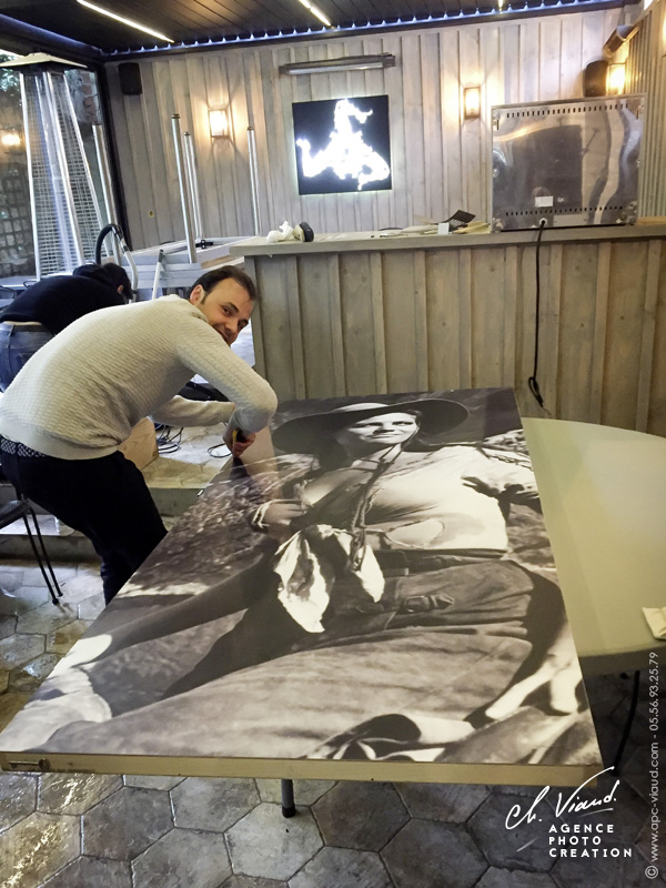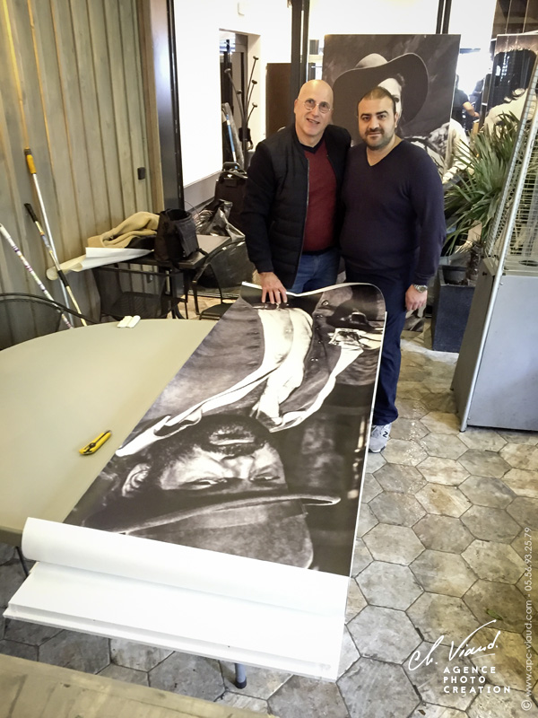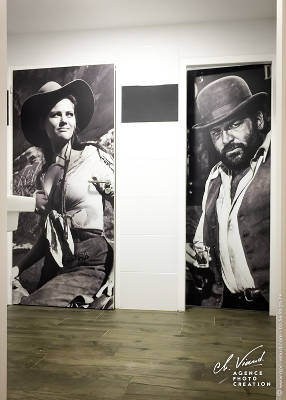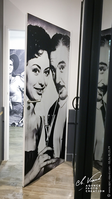 Afin de donner du caractère à ses nouveaux locaux, le restaurant Sicilia In Bocca a fait appel à nos services pour réaliser une décoration unique, à savoir habiller les portes de ses sanitaires. Quoi de mieux pour un restaurant Sicilien que de mettre en avant ses célébrités locales ! Après avoir retravaillé au mieux les photos choisies, nous les avons ensuite imprimées sur film vinyle adhésif à la dimension des portes et nous les avons pelliculées pour un résultat encore plus durable. Enfin il ne restait plus qu'à poser les visuels sur les nouvelles portes.