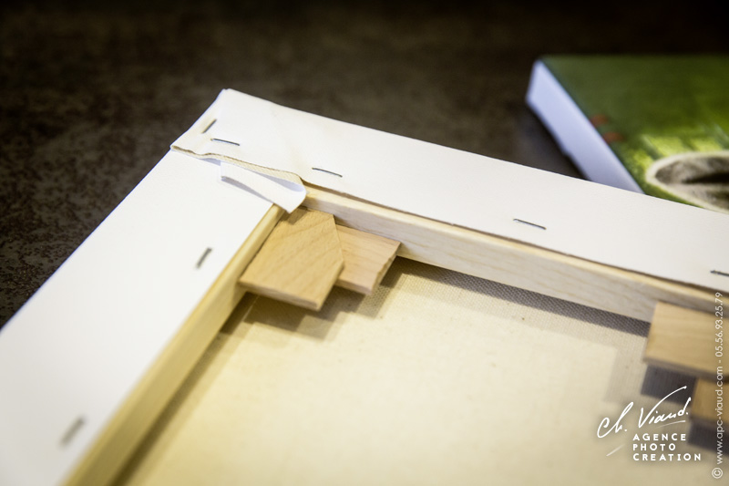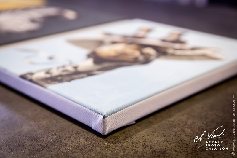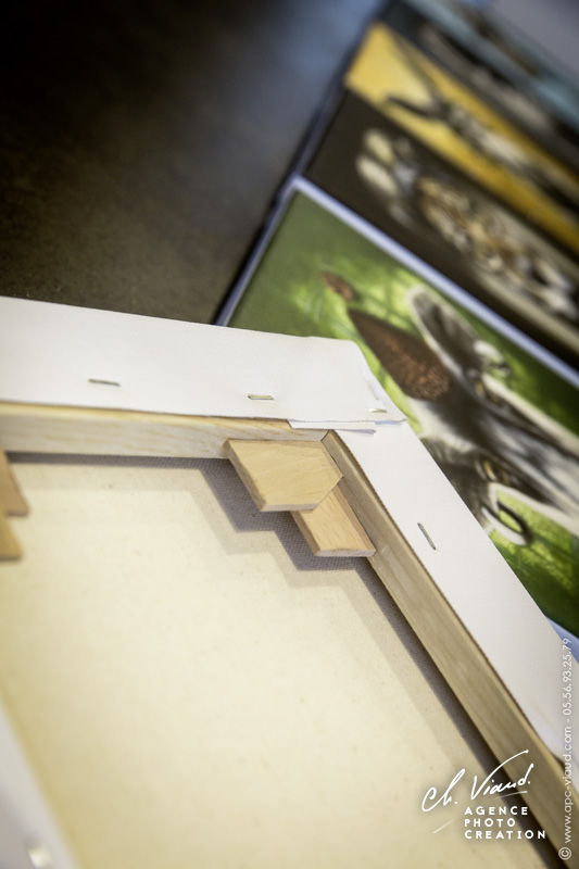 Le tirage toile protégé par un vernis est tendu sur un châssis bois qui permet d'accrocher la toile en l'état sur vos murs, ou de l'encadrer avec une baguette ou une caisse américaine.