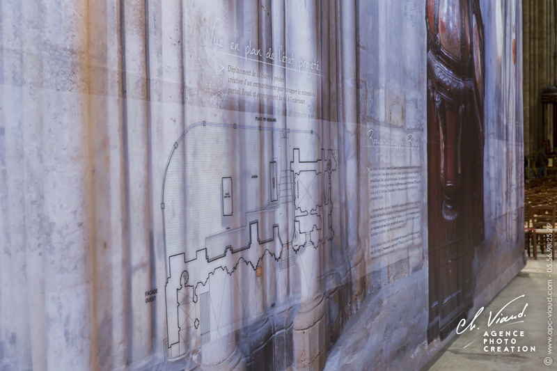 Nous avons réalisé un reportage puis un montage photographique du mur gauche de la Cathédrale Saint André de Bordeaux sur plus de 21m de long avant la mise en place d'un échafaudage pour la Réouverture du Portail Royal (XIIIe siècle) et le déplacement de la Chaire.