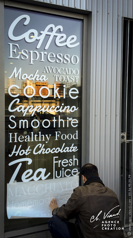 Si comme eux vous avez besoin de lettres adhésives pour habiller votre vitrine, vos murs, mettre votre logo en valeur... en tant que graphiste, nous sommes à votre écoute pour créer selon vos envies (tout est ajustable : polices d'écriture, taille, couleur, dimension), nous vous présenterons des mises en situation pour visualiser à l'avance votre projet, l'adapter...